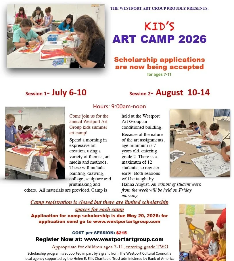 For more than fifty years, Westport Art Group Inc. has awarded scholarships annually to local area high school students interested in pursuing a higher degree in the visual arts. Recipients of these scholarships have graduated with BA and BFA degrees, and gone on to careers as artists, animators, toy designers, art teachers, and computer artists, as well as lives enriched by their engagement with the arts as painters, photographers, ceramists, printmakers, and sculptors.
