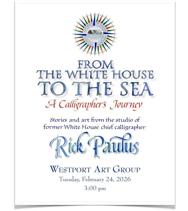 Rick Paulus is a former White House chief calligrapher, who continues his quest for the perfectly-formed letter in his studio on the shores of Buzzards Bay. Having studied and practiced calligraphy for over forty years, he remains a passionate student of the craft that first caught his interest as a ten year old boy. Rick enthusiastically shares his in-depth knowledge of calligraphy in the hopes of creating a more beautiful and humane world.