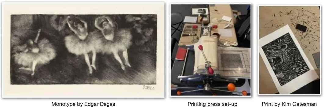 Subtractive Monotypes - An Entryway into Printmaking. Saturday, February 7, 12-4pm. A One day Workshop with Instructor Kim Gatesman.